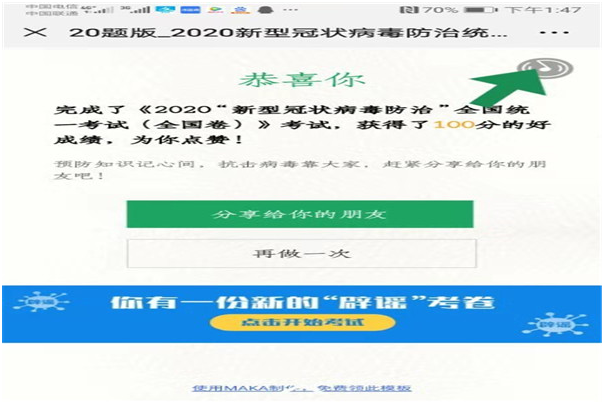 公司紀委書記陳亞軍以《新型冠狀病毒肺炎防控知識手冊》為參考,針對易混淆的、關鍵的疫情防控知識,進行考試題目設計,借助微信平臺發(fā)放答題鏈接,呼吁全體黨員干部主動學習防疫知識,積極參與競賽答題。短短半天時間,天谷集團50余名黨員參與答題,95%獲得100分以上的好成績。疫情就是責任,防控就是命令,在這特殊時期,通過此次知識競賽活動的開展,全體黨員干部了解當前的疫情現(xiàn)狀,學習疫情相關防護知識,起到了引領大家正確認識疫情,防控疫情的作用。